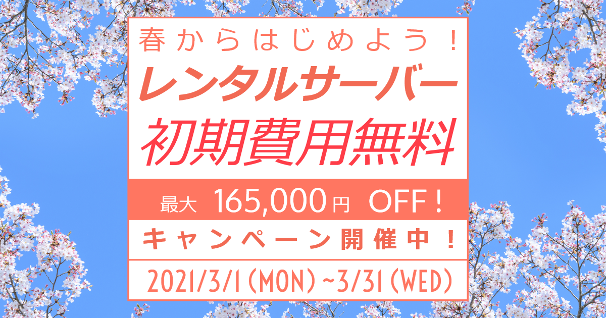 2021年3月1日(月)より「春からはじめよう!レンタルサーバー初期費用無料キャンペーン」を開催します。