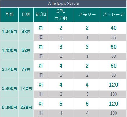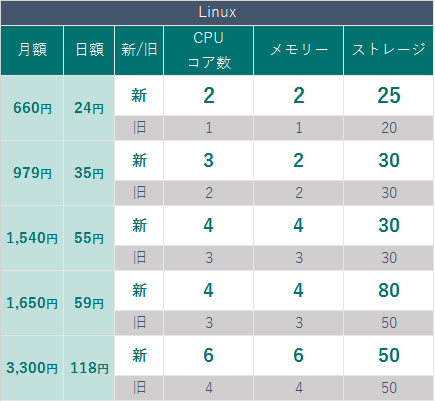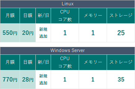 新プランでは、Linux OS、Windows Server、いずれのOSを選択した場合も、価格据え置きでスペックを強化しており、従来よりコストパフォーマンスが高いサービスをご提供いたします。