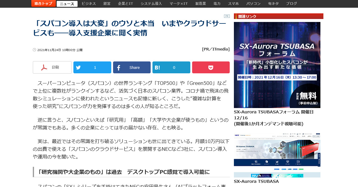 ITmedia に HPCサービス を紹介いただきました。