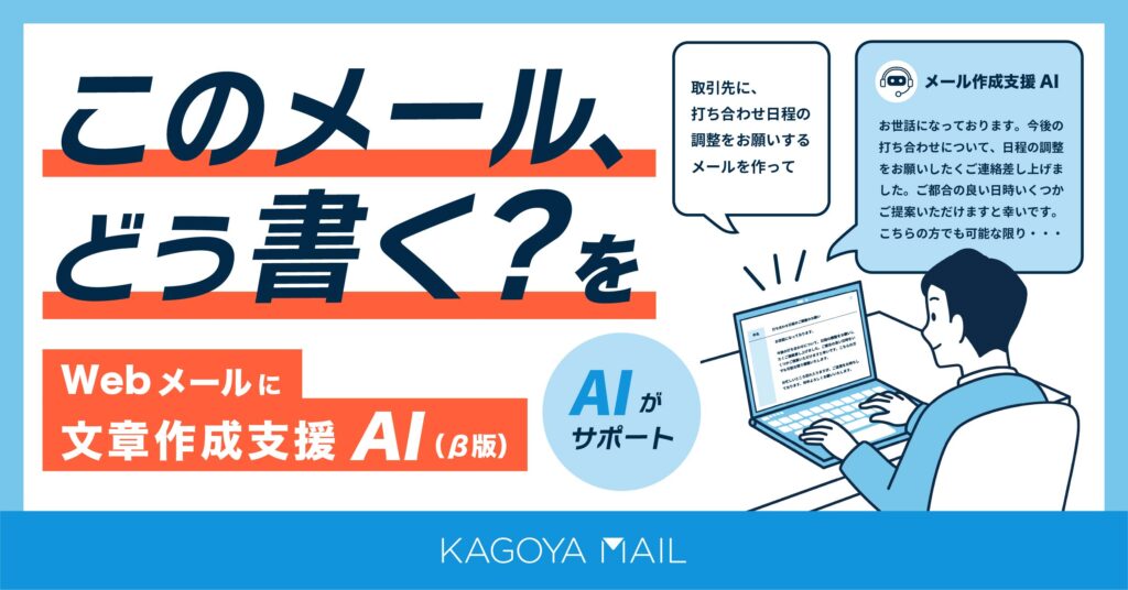 2026年4月21日(火)より、法人向けメールサービス「KAGOYA MAIL」のWebメール機能において、メール文章の作成・返信を支援するAI機能を、提供開始いたします。