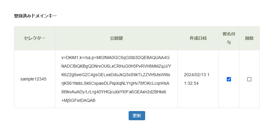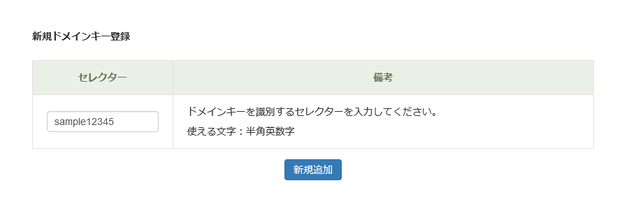 - 「新規ドメインキー登録」で任意のセレクター名で新規追加を行います。