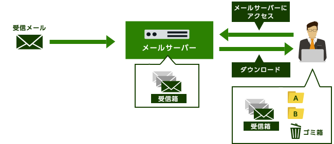 POPで受信するとメールはPCに保存され、メールサーバーから削除される