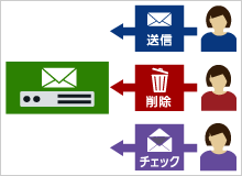 送受信したメールはサーバー上で管理されているため、自宅・会社を問わず、メールソフトを開けばいつも同じ環境でメールを確認できます。