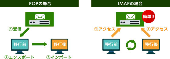 POPを利用していると、メールソフトを変更する際にデータ移行などの煩雑な作業が必要です。