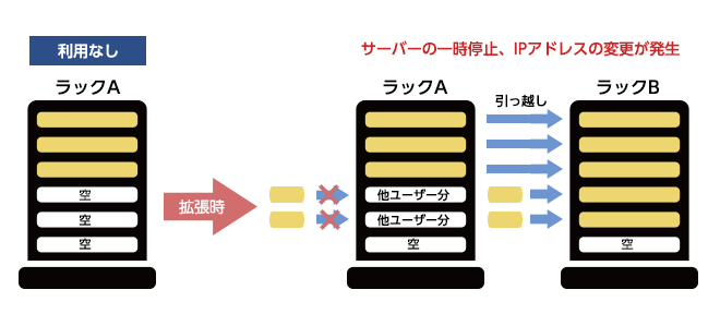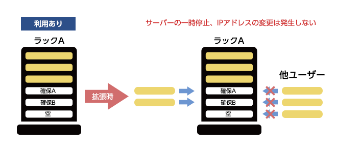 確保していない場合、ご利用中のサーバーが収容されているラックに空きがなければ、拡張する際に別のラックへの移動が必要となります。
