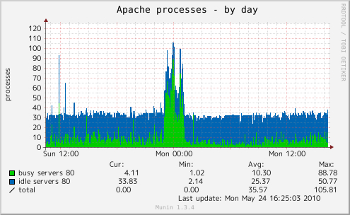 ご利用中のサーバーのApacheのプロセス状況を表示します。(下記グラフは日別表示)
