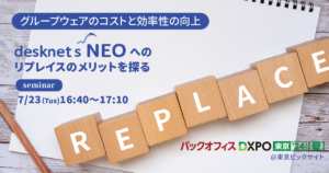 | 登壇セミナー | グループウェアのコストと効率性の向上:desknet’s NEOへのリプレイスのメリットを探る |