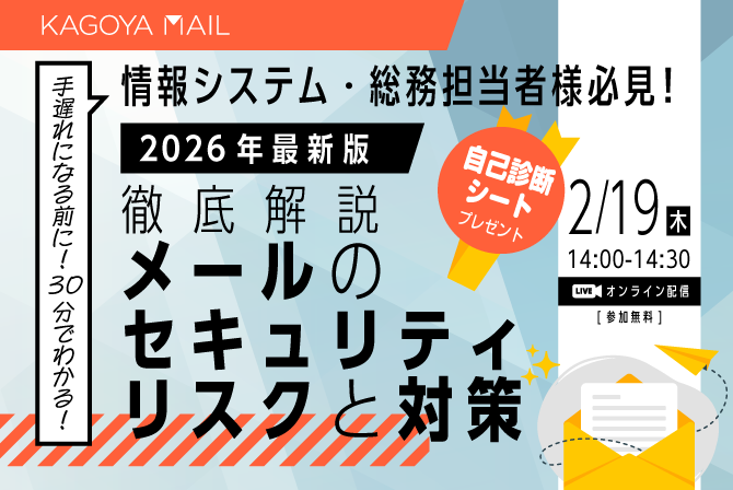 | イベント名 | 2026年最新版【徹底解説】メールのセキュリティリスクと対策 |