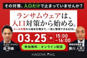 安全性と運用負荷の観点から、自社に最適なセキュリティ対策を解説 近年、中堅・中小企業においてもランサムウェア被害や標的型攻撃が急増しており、特にメールを侵入経路とした攻撃が大きな脅威となっています。一方で、専任の情報シス … 続きを読む ランサムウェアは“入口×端末”で止める ~情シス専任じゃなくてもできるメール×エンドポイント多層防御~