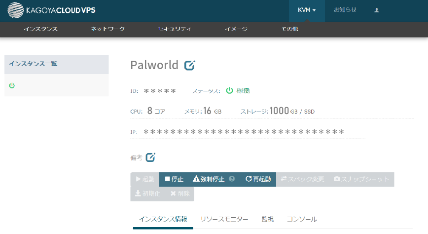 拠点数やパルの出現数の設定などによって推奨スペックは変動しますが、スペック不足を感じた場合もコントロールパネルから簡単にスペック変更が可能です。